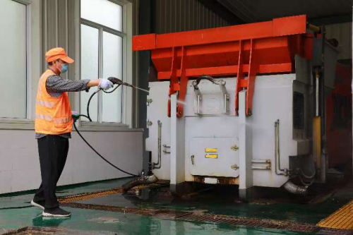 公厕、垃圾压缩站、城市部件是城市环境的“窗口”,中心从细节入手,全方位提升设施洁净度。所辖37座公共卫生间实行“随脏随清”保洁制度,彻底消除卫生死角和盲区,并根据气温、人流量变化加密消杀除臭频次,着力改善如厕环境;生活垃圾压缩站做好日常维护,及时冲洗擦拭压缩设备,通过错时引导垃圾倾倒,避免人员车辆聚集;将公厕、压缩站周边5米区域纳入长效管理,重点捡拾烟头、零星垃圾,实现“设施净、周边洁”的目标;针对辖区公交站台、路名牌、公益广告牌等城市部件,开展全方位清洗作业;重点关注夜市、小吃街等易产生油污区域,安排专人予以及时清理,快速恢复路面整洁,让城市设施既“实用”又“美观”。